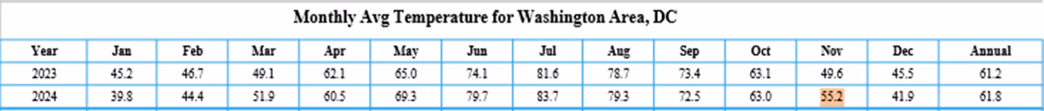 Note that month-to-month usage may change during the winter season based on weather conditions. According to the National Weather Service, average temperatures in December 2024 were 3.6 degrees lower than the previous year and 13.3 degrees lower than November,1 which may have resulted in increased energy consumption to heat your home.