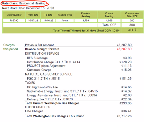 - Distribution Service - This covers the cost of transporting the natural gas through the Washington Gas system to your meter.